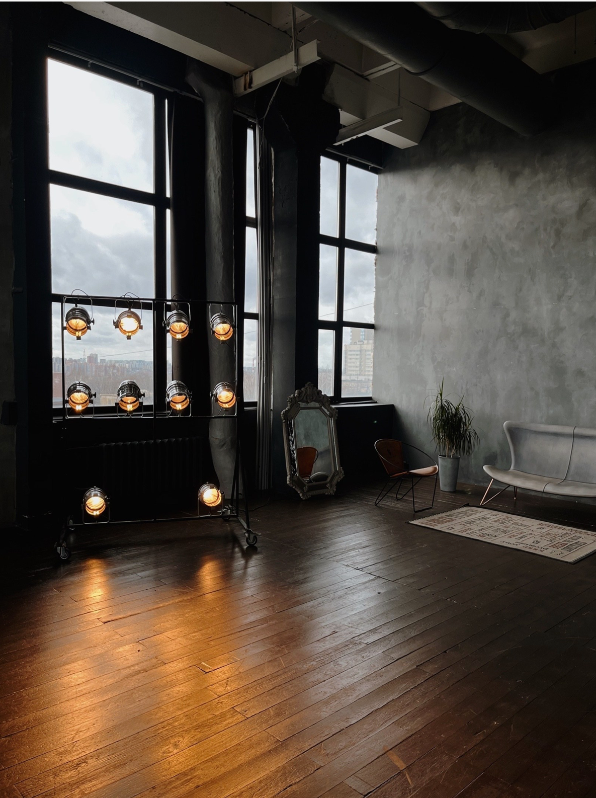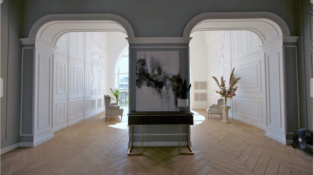 Просто ооооогроооомный светлый зал. Раньше было два по 55 м², а теперь один на 110 м²! Отельный стиль с одной стороны + минимализм с другой. Комбинируй как нравится. Снимай как хочется. Простор для фантазии — бесконечный!