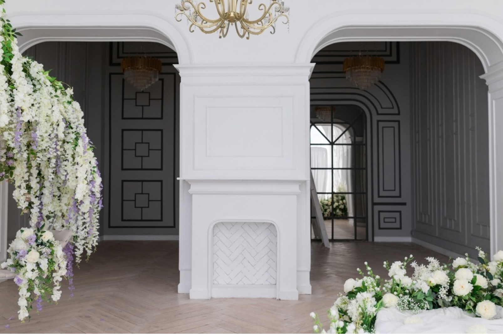 Свадебная история. Классический интерьер идеален для свадебных фотосессий. Много света и пространства! Огромные арки добавляют масштаба залу и идеально дополняют выверенный интерьер!
